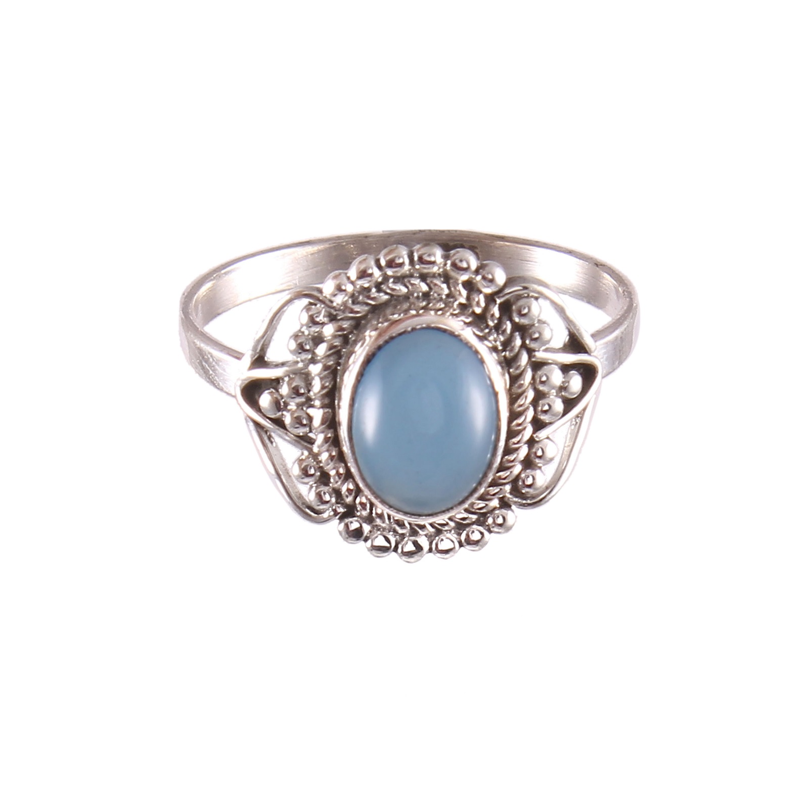 Elegant 925 Sterling Silver Natural Blue Chalcedony Ring