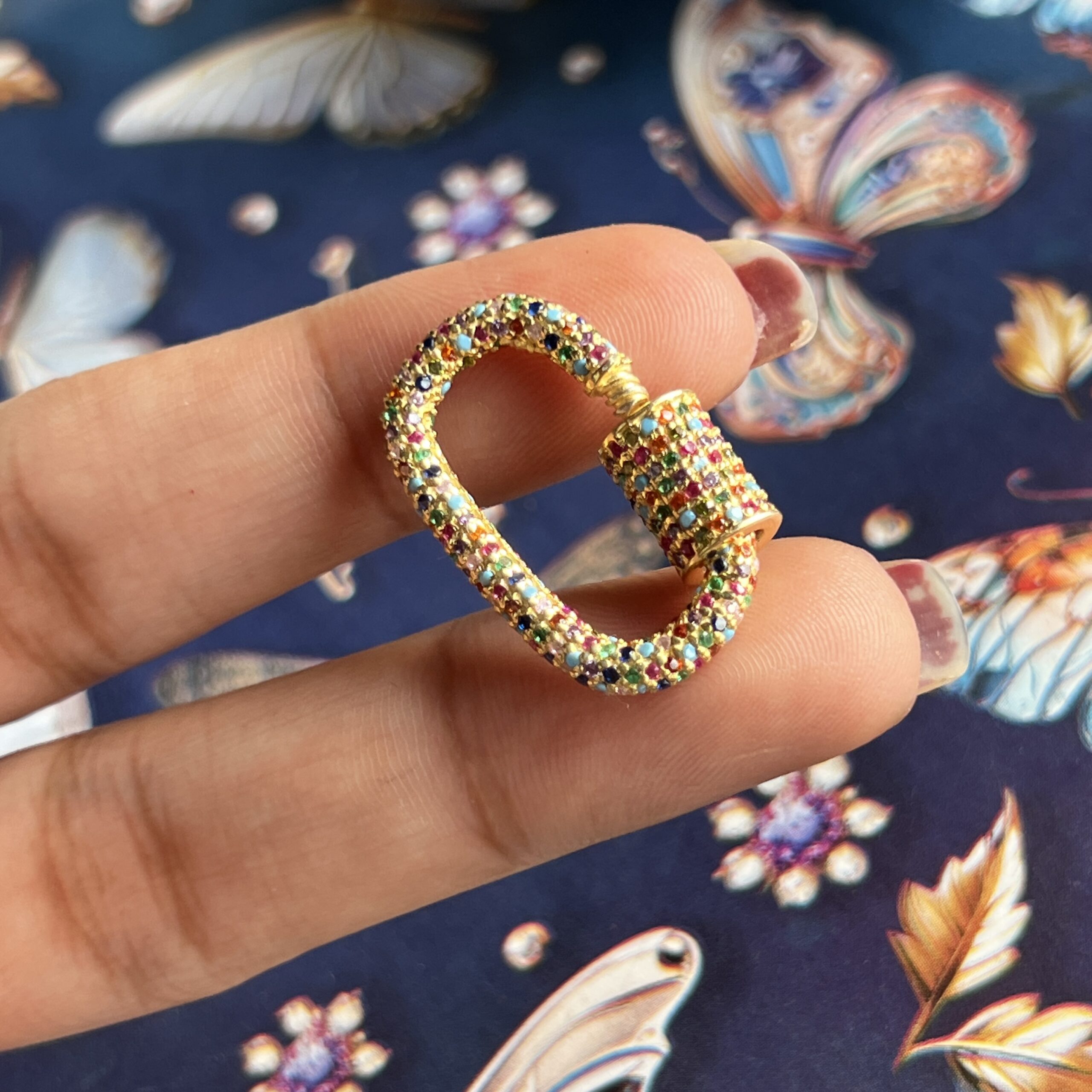 The secure screw lock mechanism ensures that your charms, pendants, or chains stay safely in place while allowing you to easily attach or remove jewelry pieces whenever you want to refresh your style. The vibrant multi-color CZ stones create a brilliant shine, giving the piece a luxurious and eye-catching appearance.