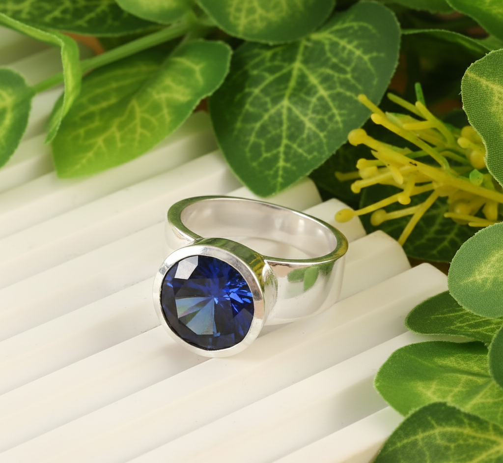 Welcome to Shri Shyam Gems and Jewelry, where elegance meets craftsmanship. Our 925 Sterling Silver Blue Topaz Hydro Stone Bezel Setting Engagement Ring set in 925 sterling silver, is designed to add a touch of sophistication to any outfit.