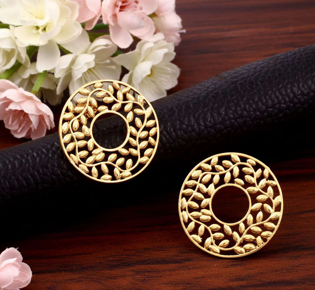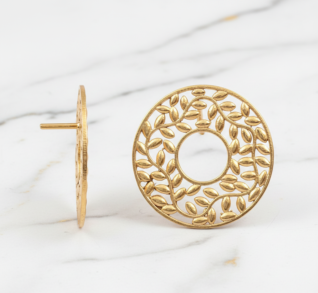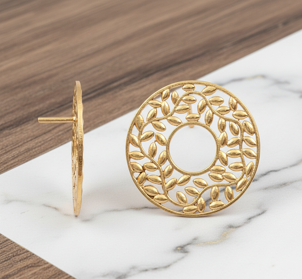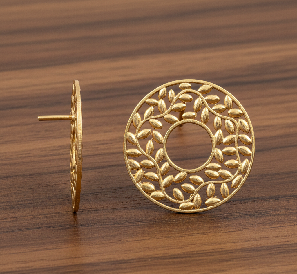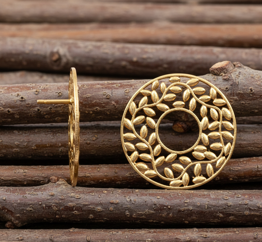 Why Choose Our Gold Plated Carved Leaf Disc Earrings Studs in 925 Sterling Silver?