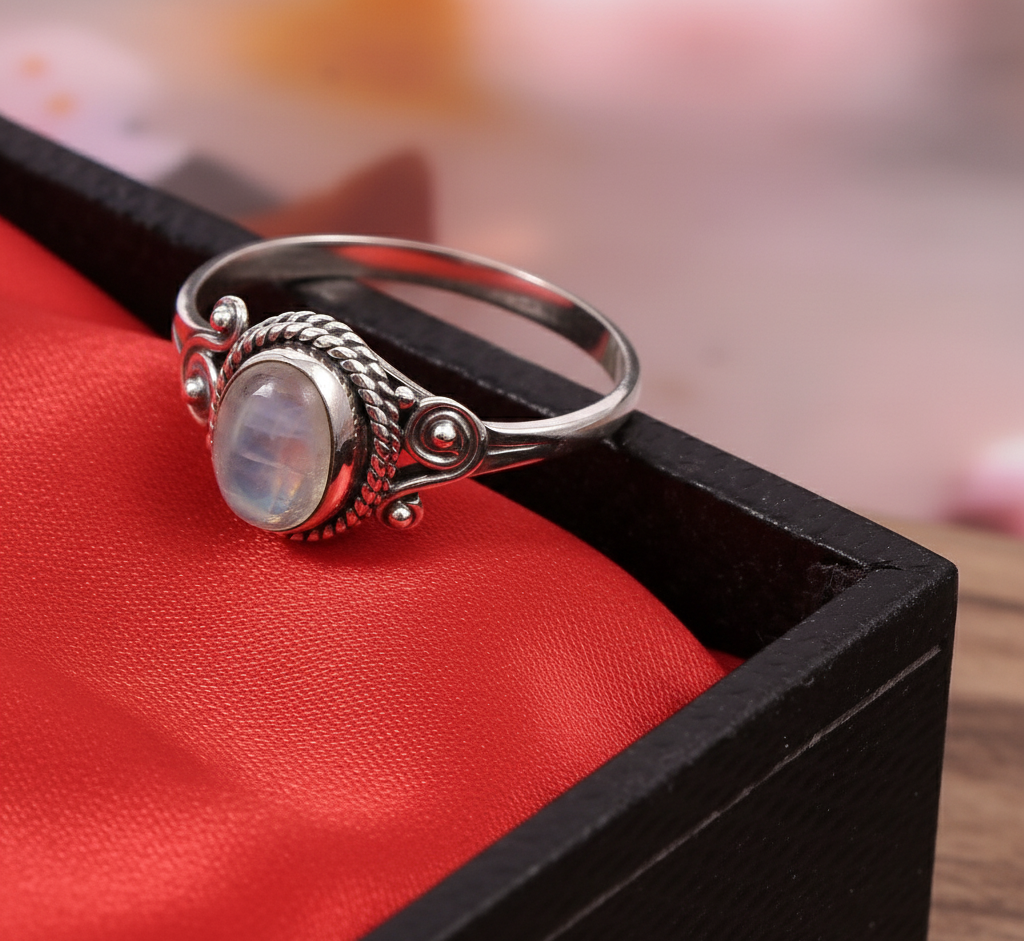 Welcome to Shri Shyam Gems and Jewelry, where elegance meets craftsmanship. Our Rainbow Moonstone Gemstone Ring, set in 925 sterling silver, is designed to add a touch of sophistication to any outfit.