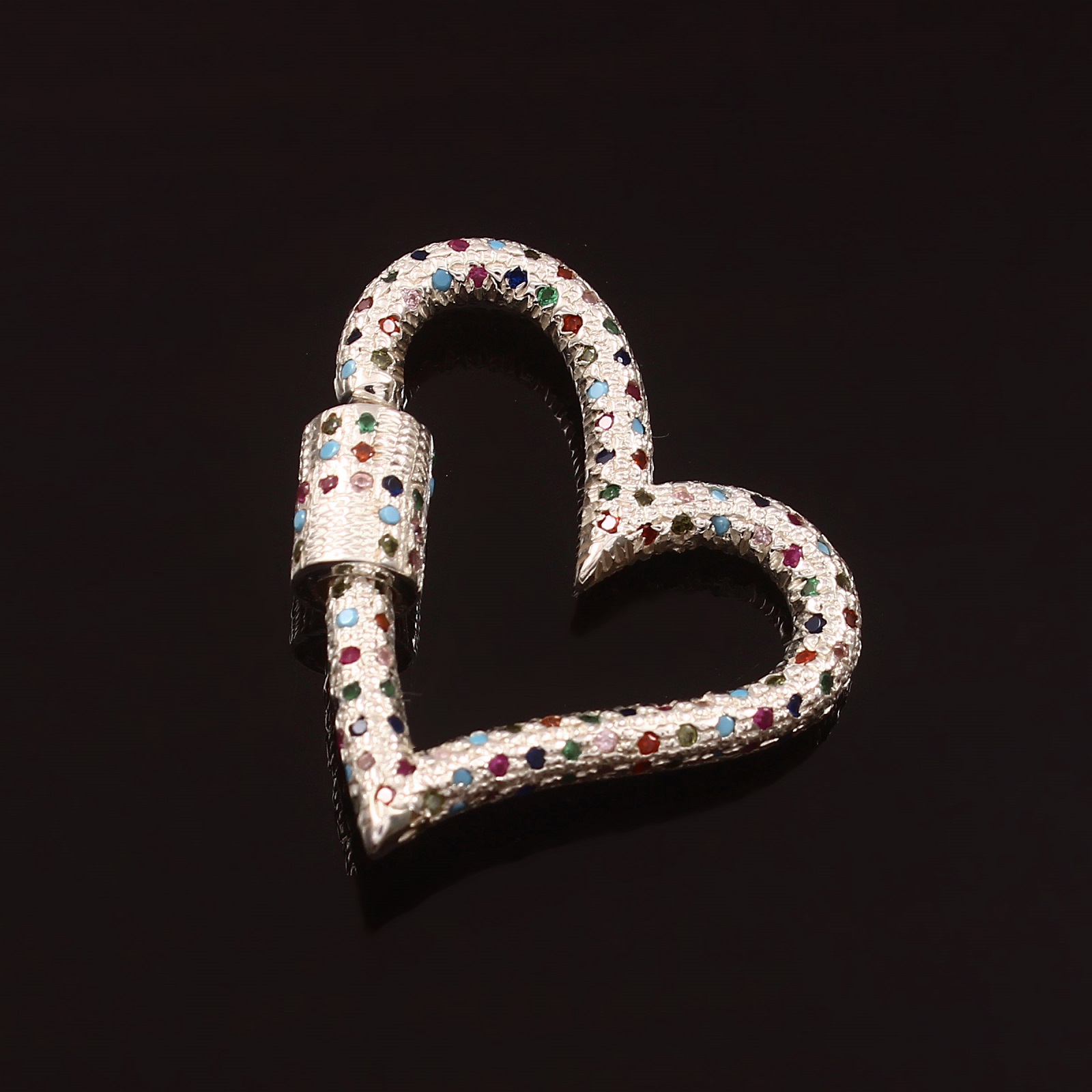 Heart Shape Carabiner Lock 925 Sterling Silver With Multi-Color CZ