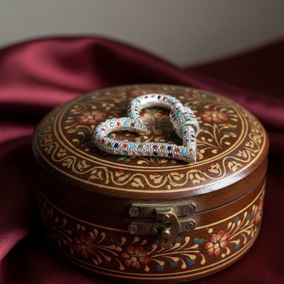 Add a stylish and functional touch to your jewelry collection with the Heart Shape Carabiner Lock 925 Sterling Silver With Multi-Color CZ. This beautifully designed lock charm combines elegance with versatility, making it perfect for modern jewelry styling. Crafted from high-quality 925 sterling silver, this heart-shaped carabiner lock is durable, hypoallergenic, and ideal for everyday wear.