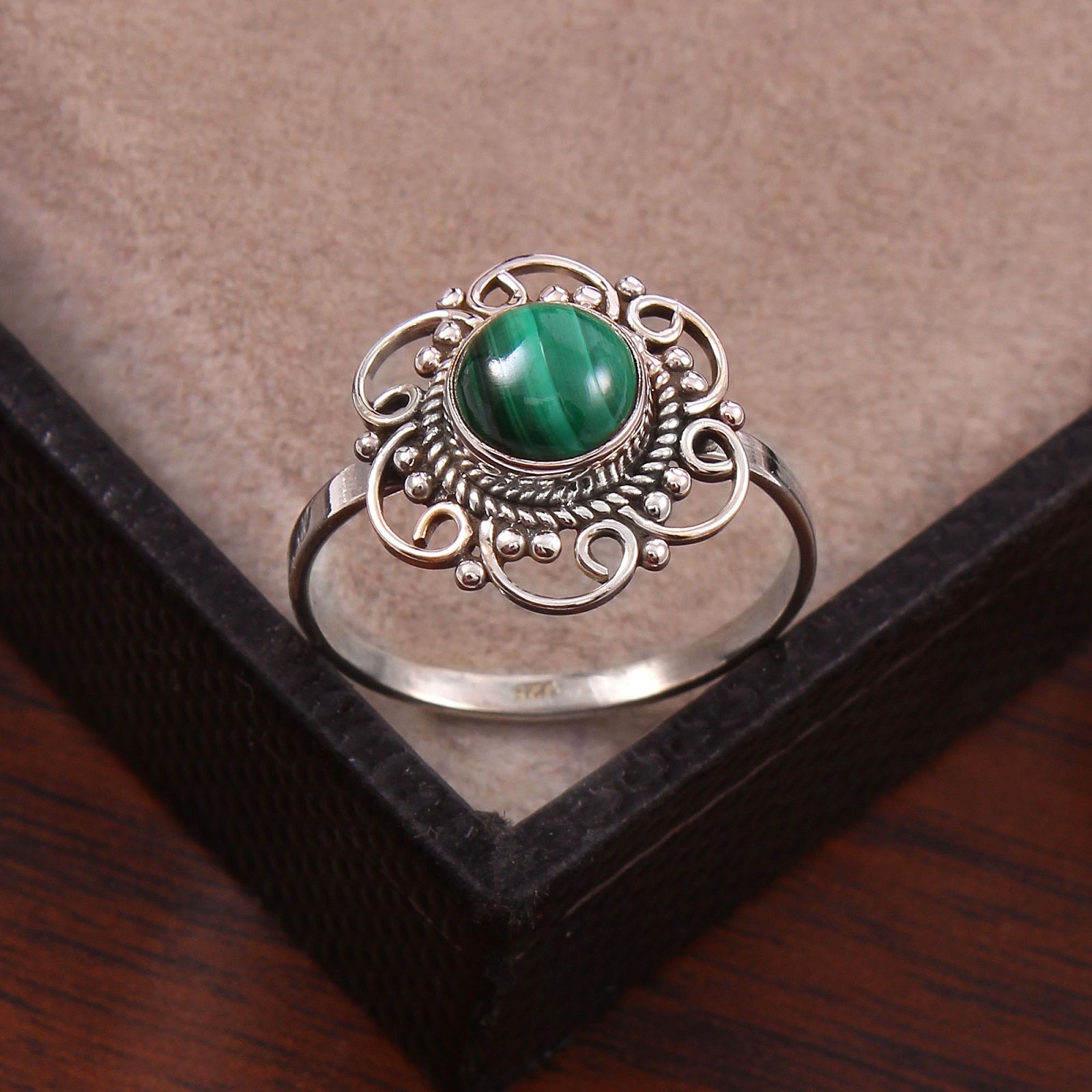 Why Choose Oxidized 925 Sterling Silver Malachite Bezel Setting Handmade Classic Women’s Ring?