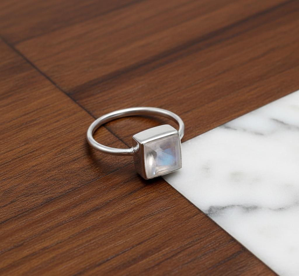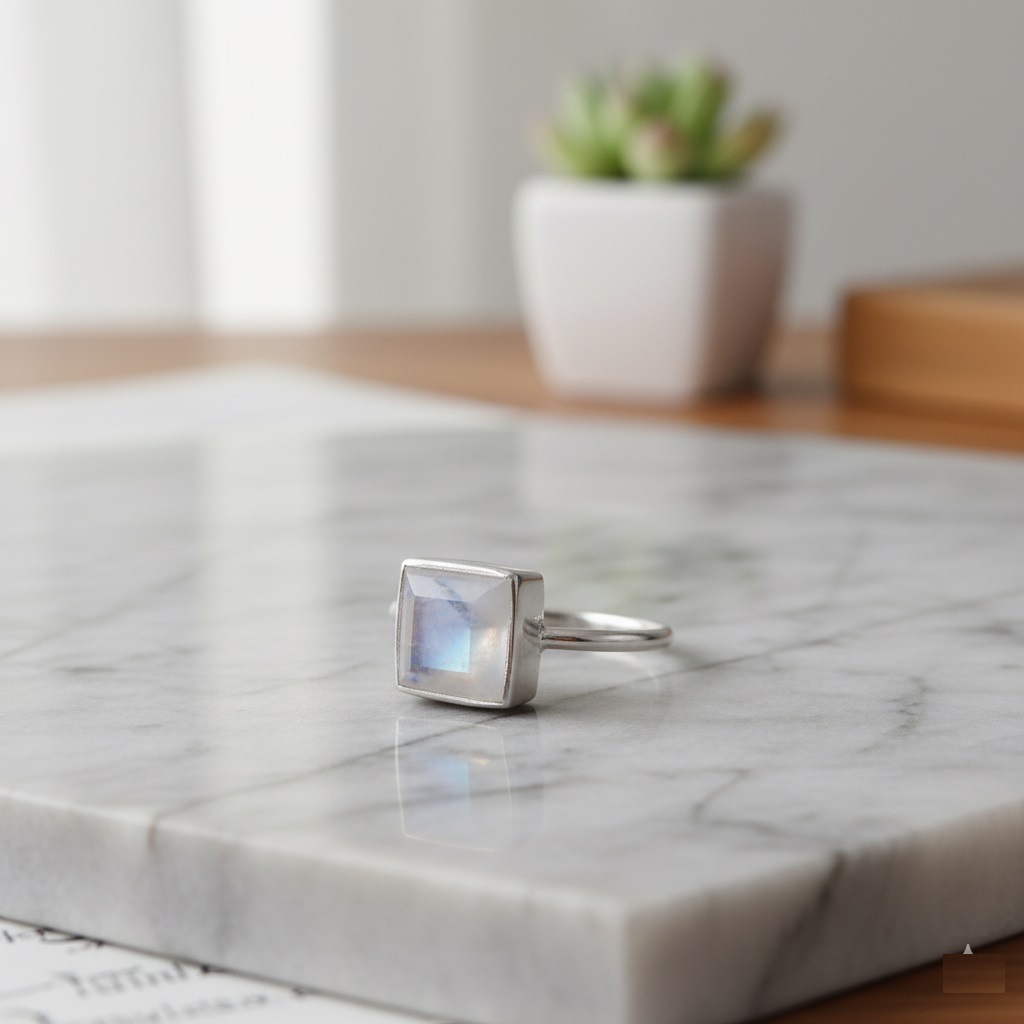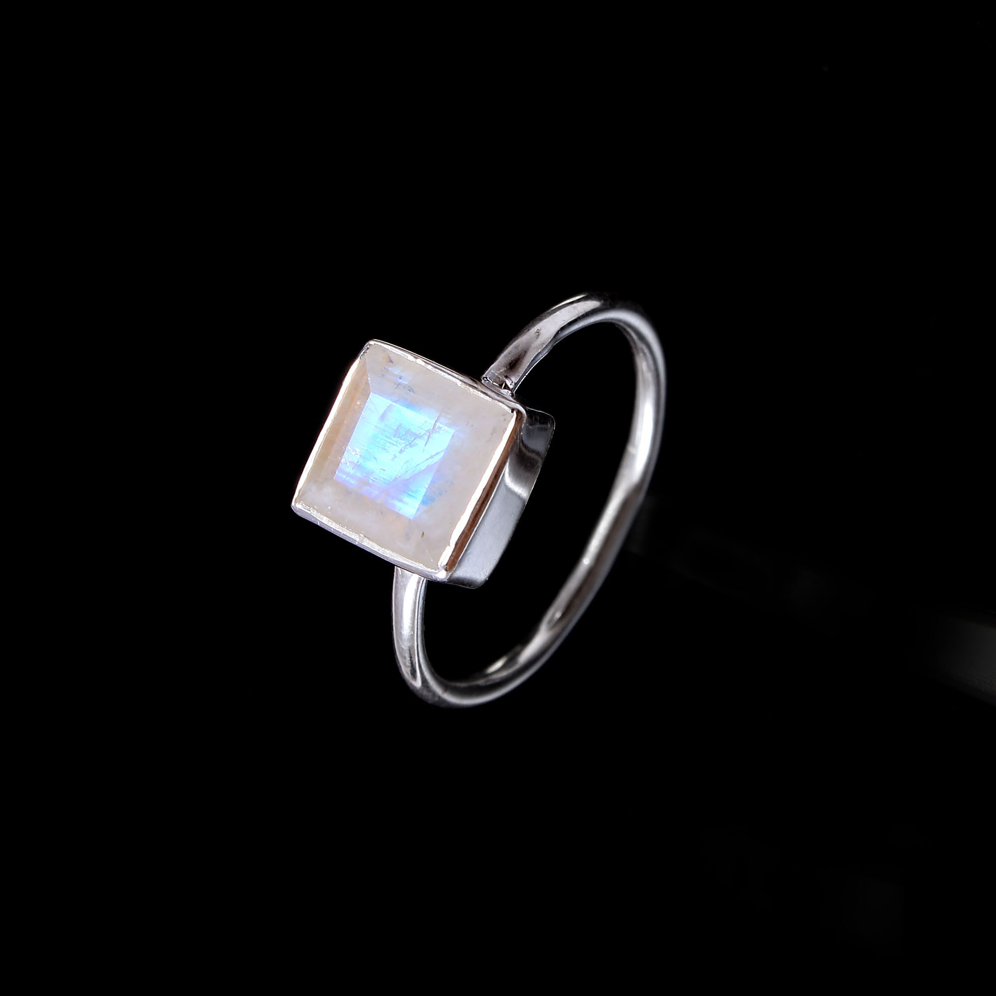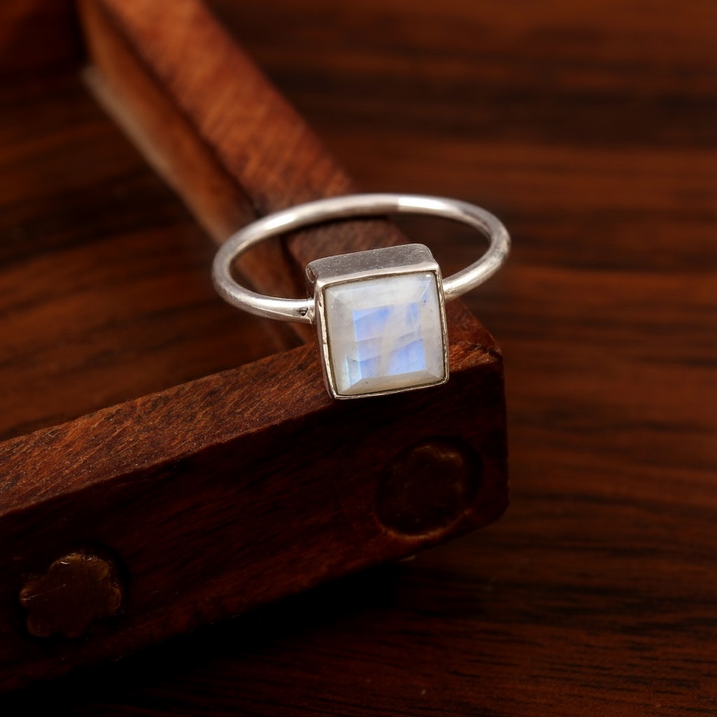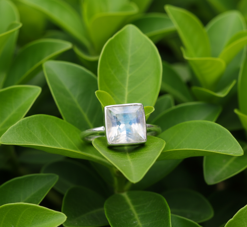 Why Choose Our 925 Sterling Silver Natural Rainbow Moonstone Square Faceted Gemstone Ring?