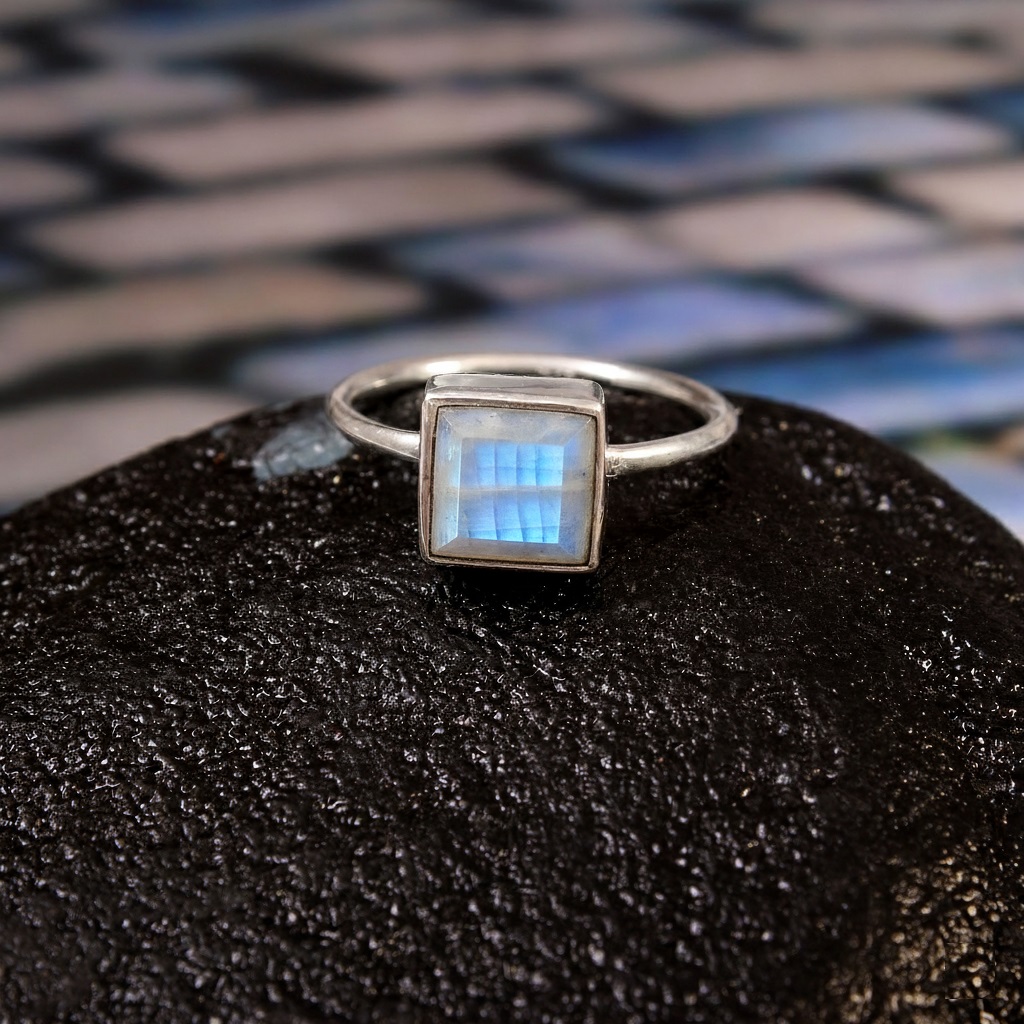 Enhance your jewelry collection with our exquisite Natural Rainbow Moonstone Square Faceted Gemstone Ring. Shop now and enjoy fast shipping and secure payment options and Check out our custom jewelry design page for personalized options.