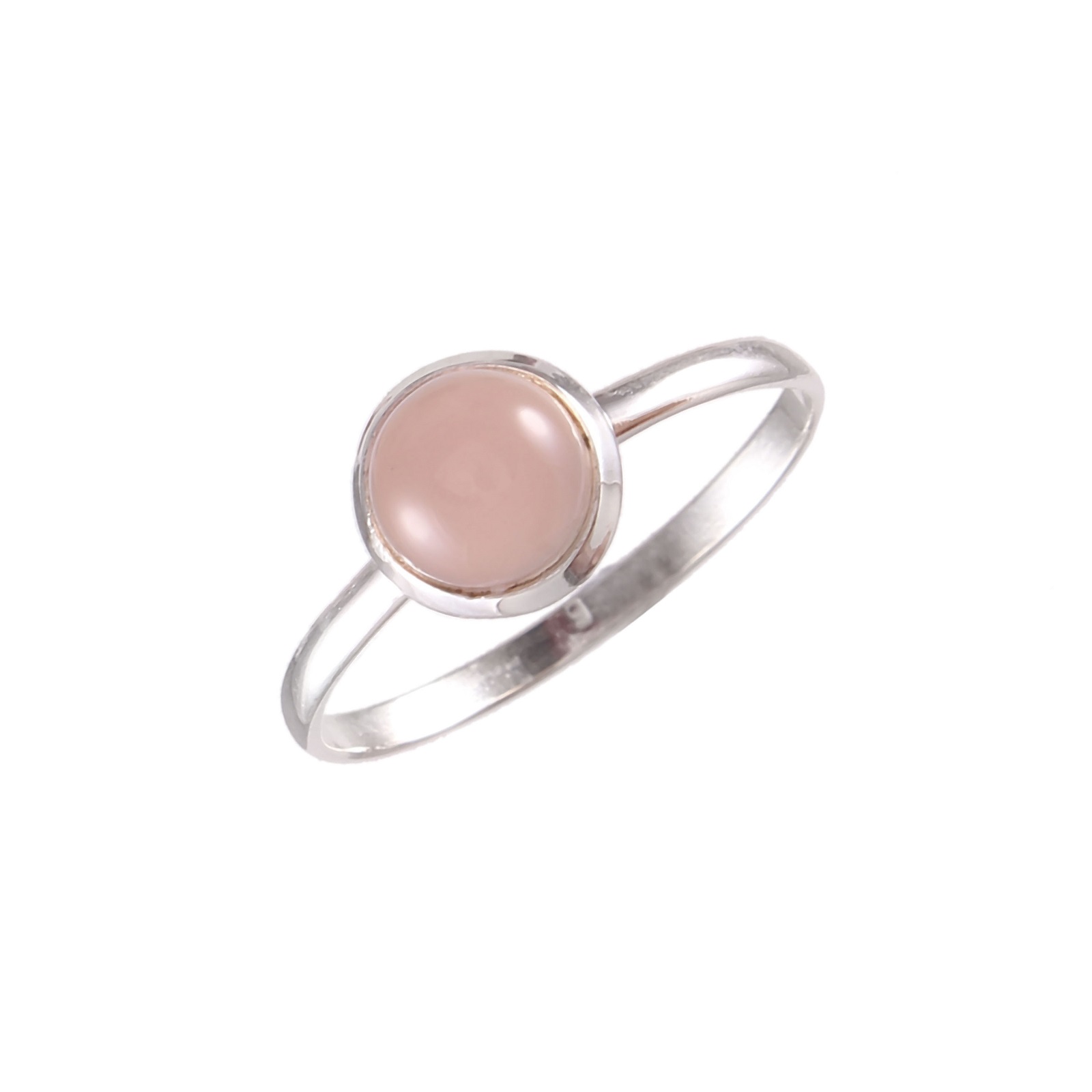 Elegant 925 Sterling Silver Natural Round Rose Quartz Ring