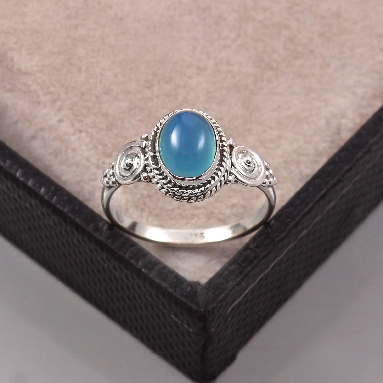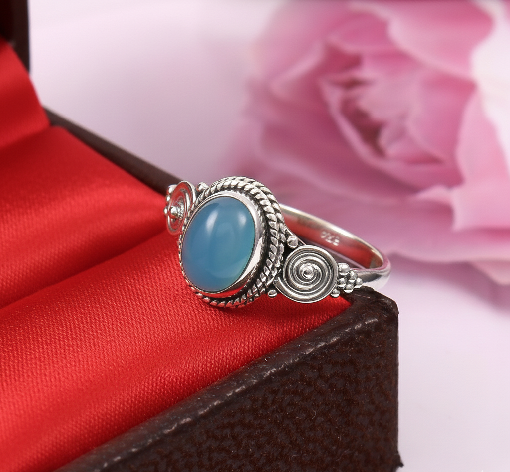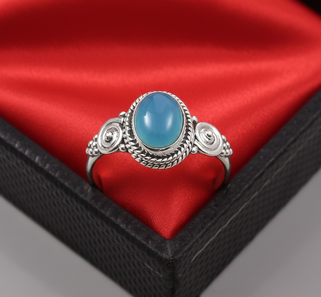 Why Choose Handmade 925 Sterling Silver Oval Blue Chalcedony Ring Oxidized?