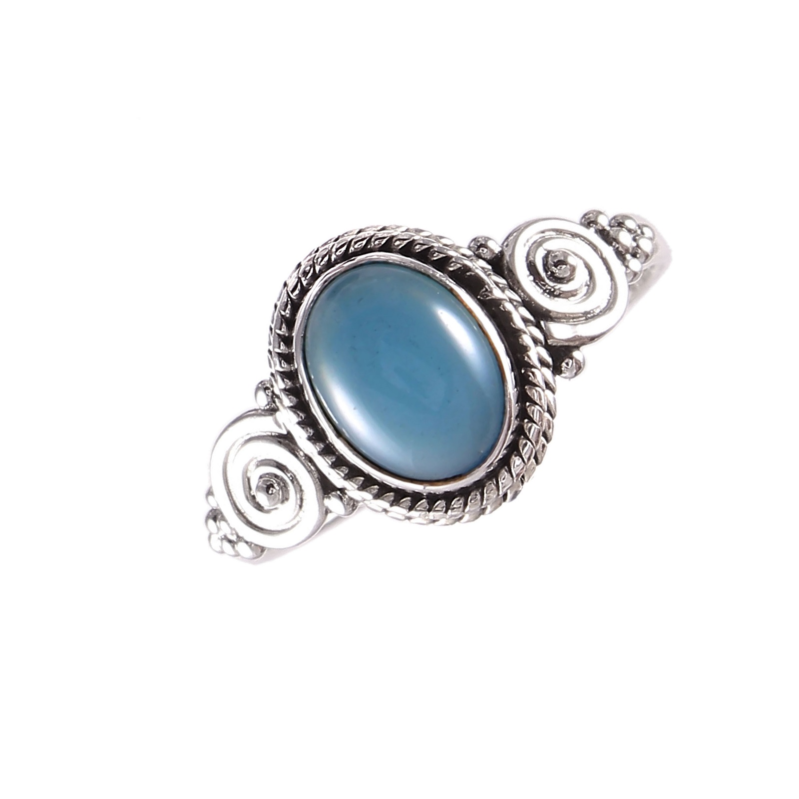 Elegant Handmade 925 Sterling Silver Oval Blue Chalcedony Ring Oxidized