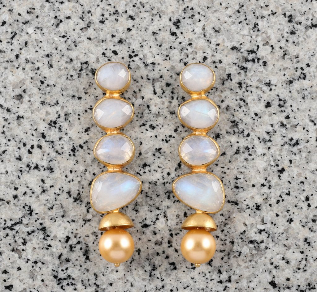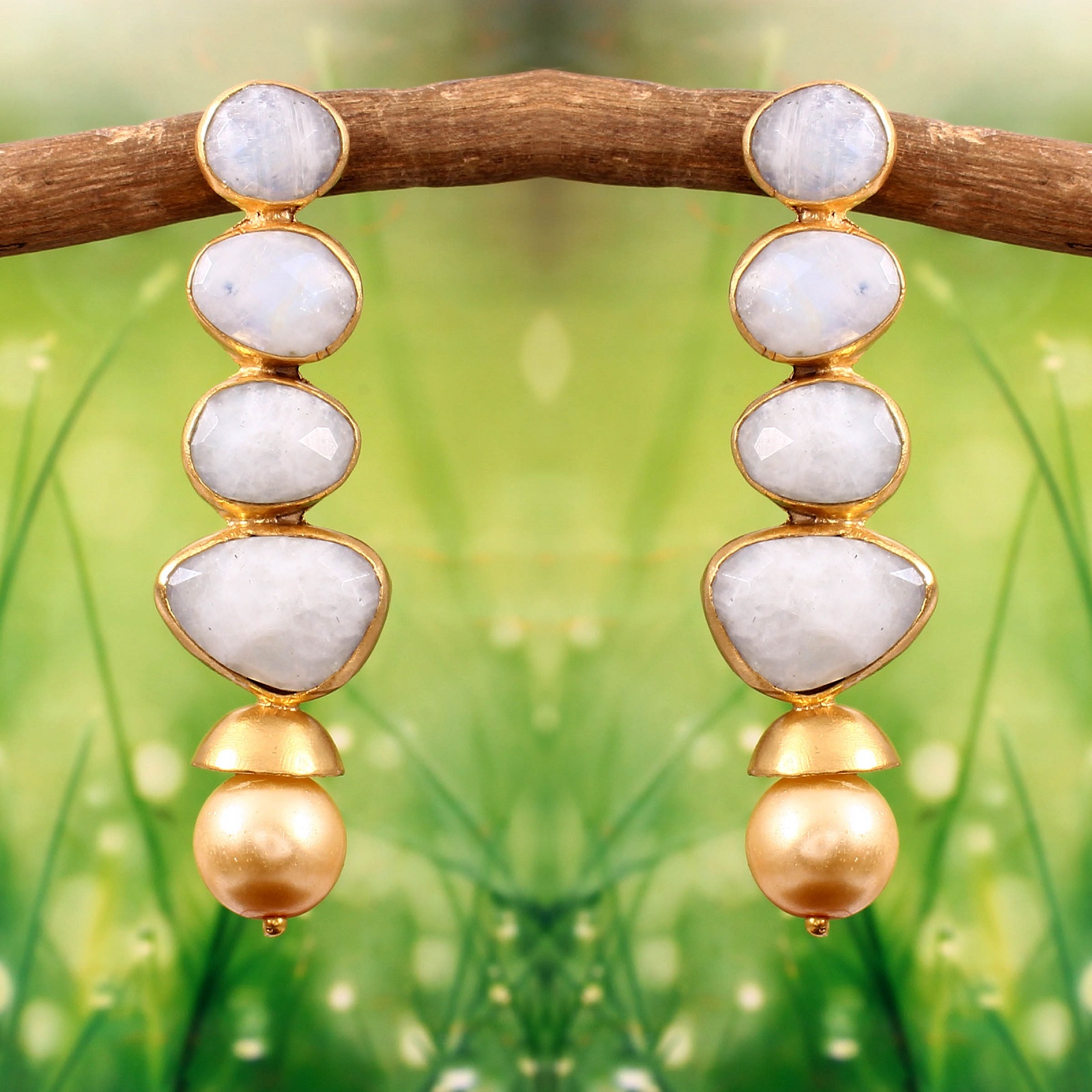 925 Silver Random Shape Rainbow Moonstone Drop Earrings