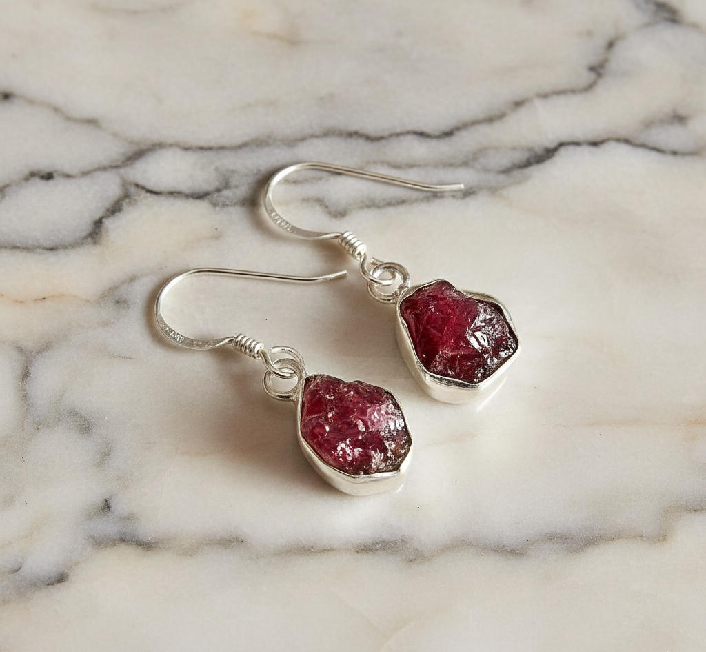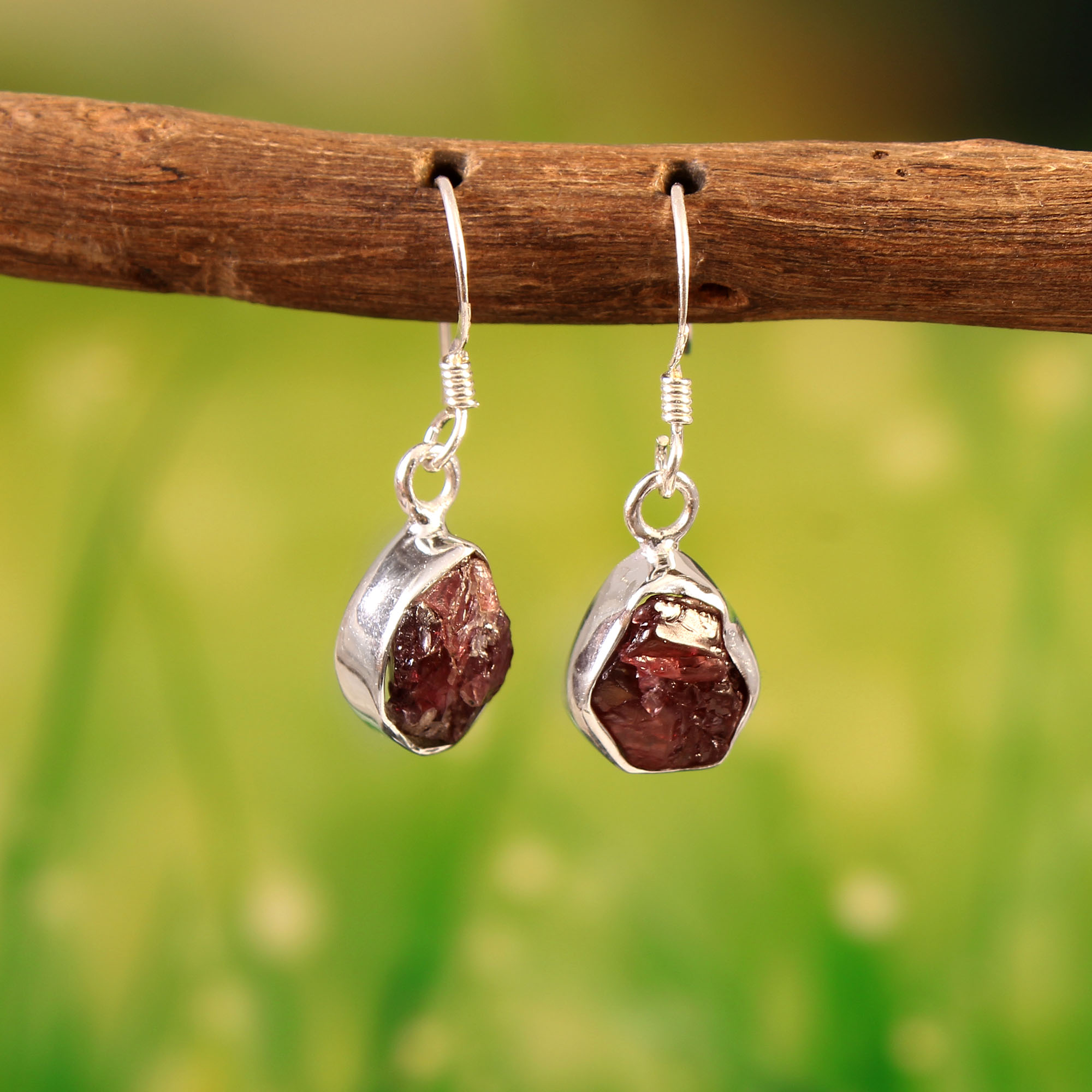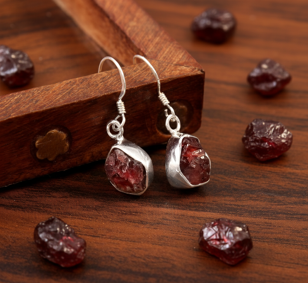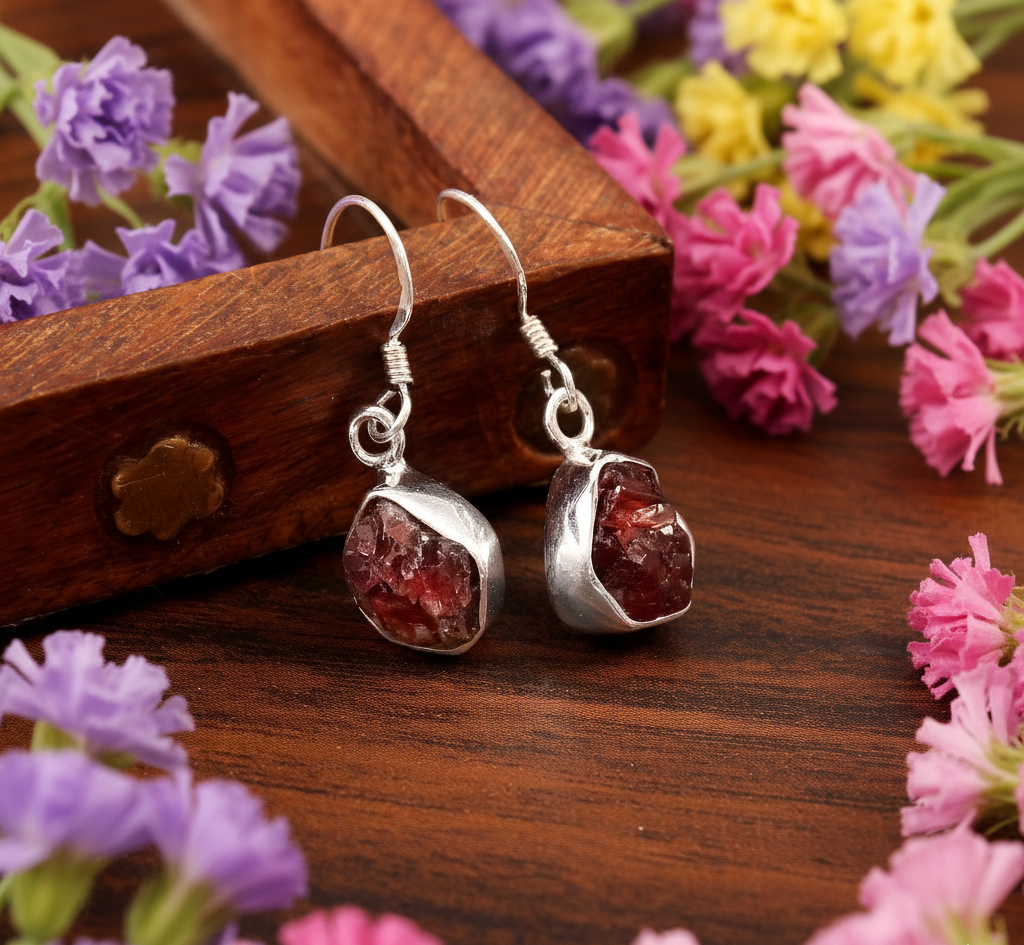 Why Choose 925 Sterling Silver Raw Garnet Gemstone Drop Earrings ?