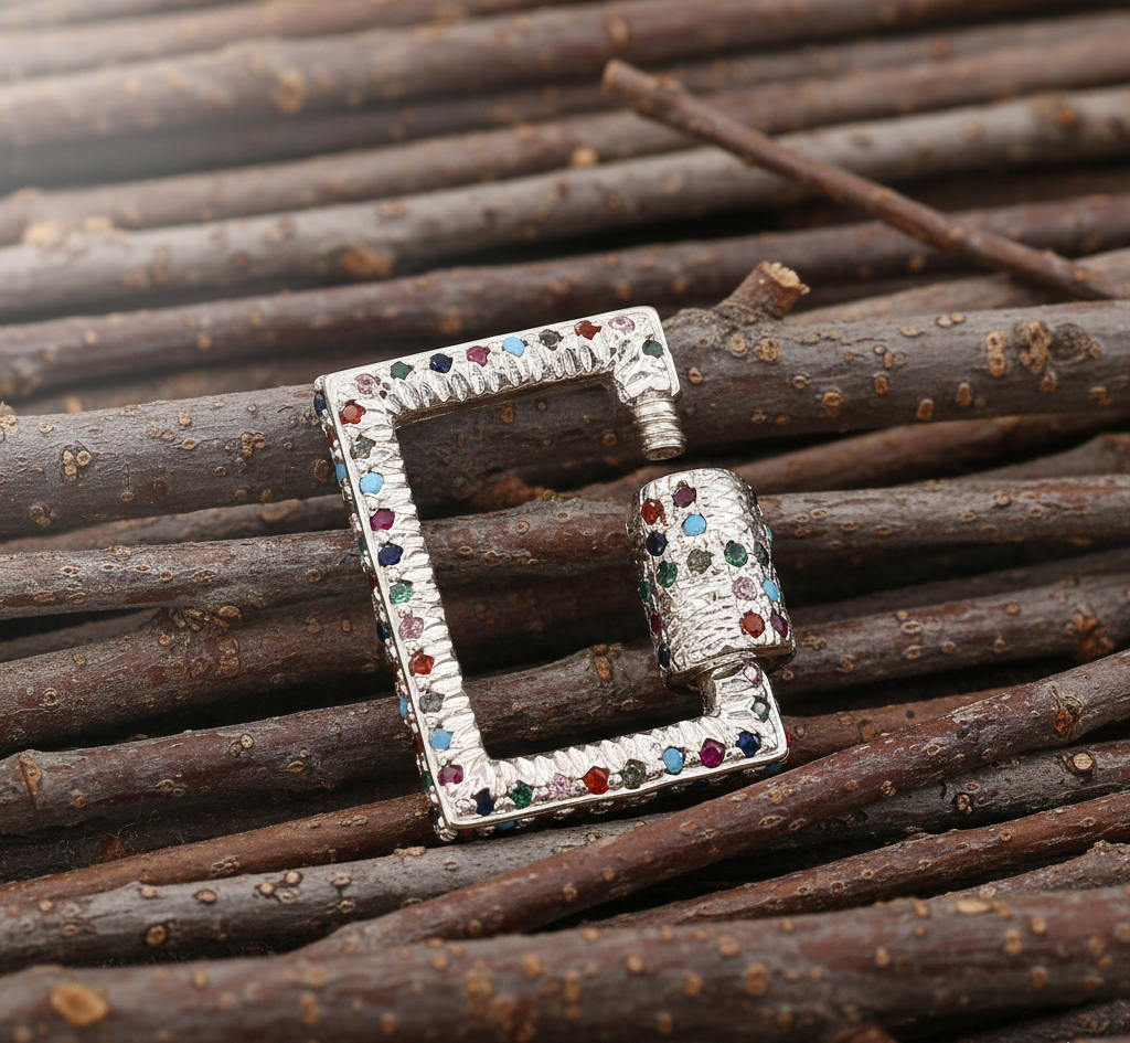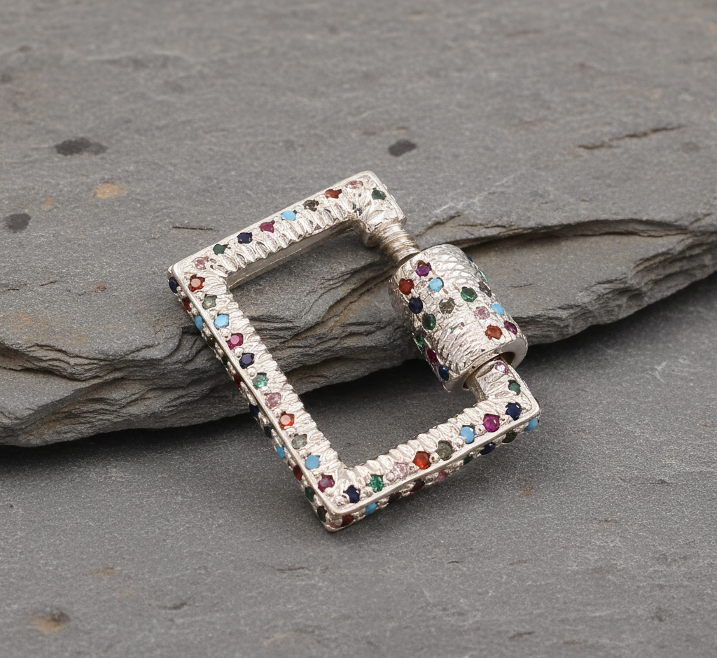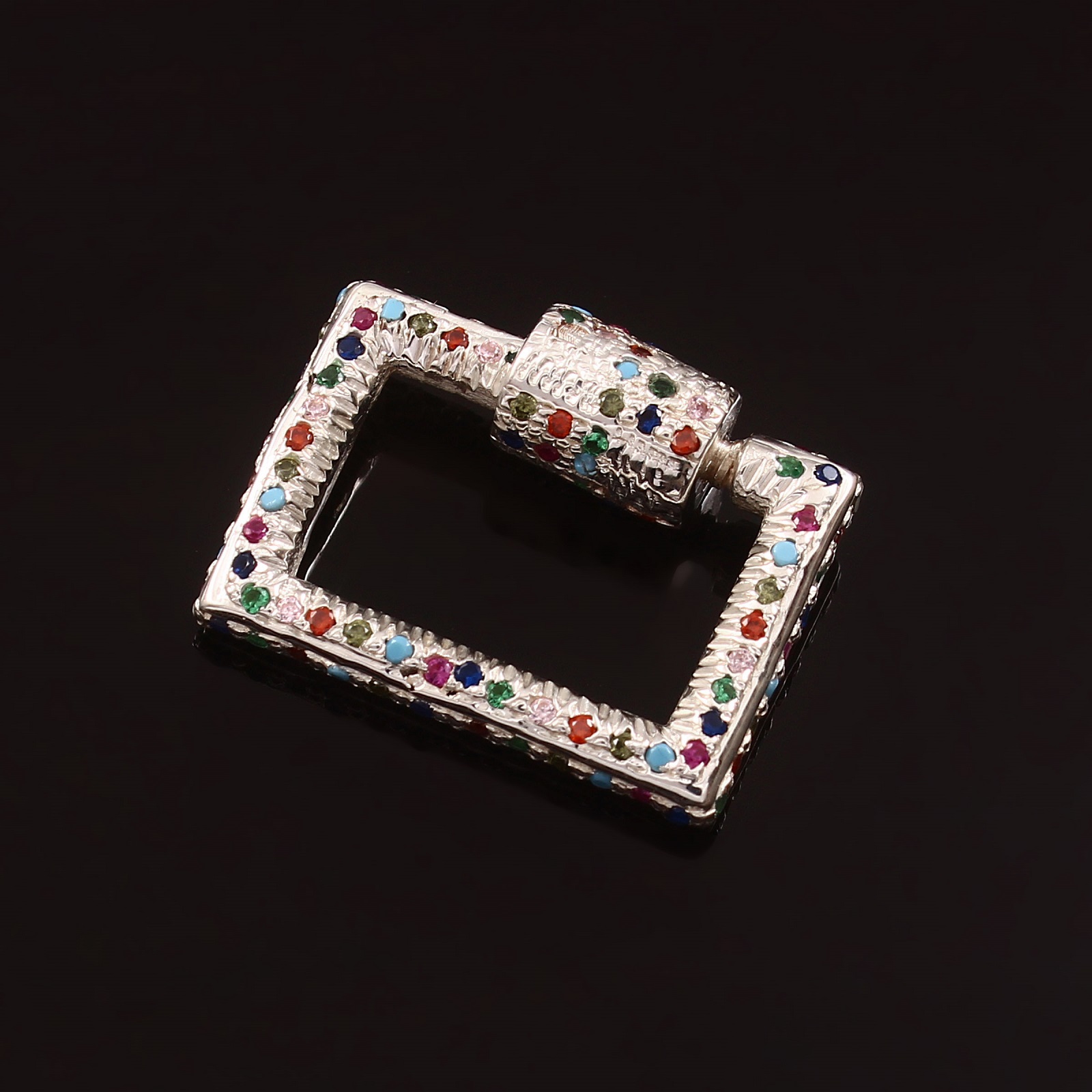 Exquisite 925 Sterling Silver Rectangular Lock Charms With Color CZs