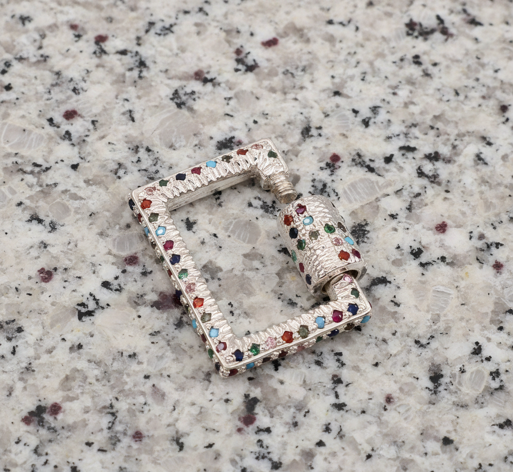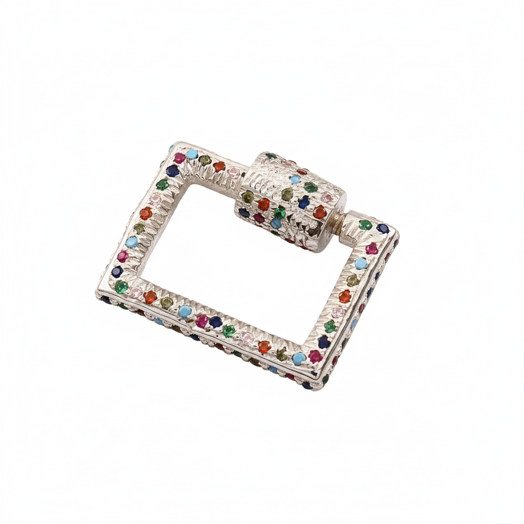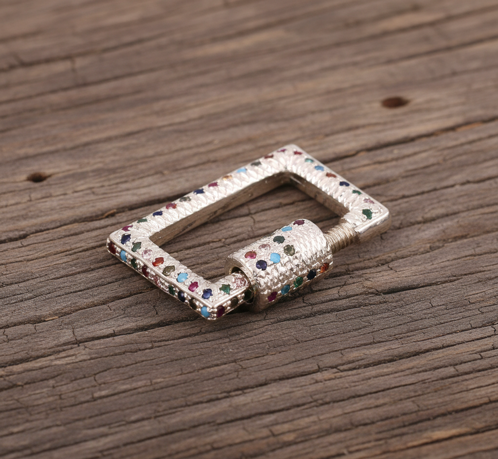 Enhance your jewelry collection with our Elegant 925 Sterling Silver Rectangular Lock Charms With Color CZs. Shop now and enjoy fast shipping and secure payment options.