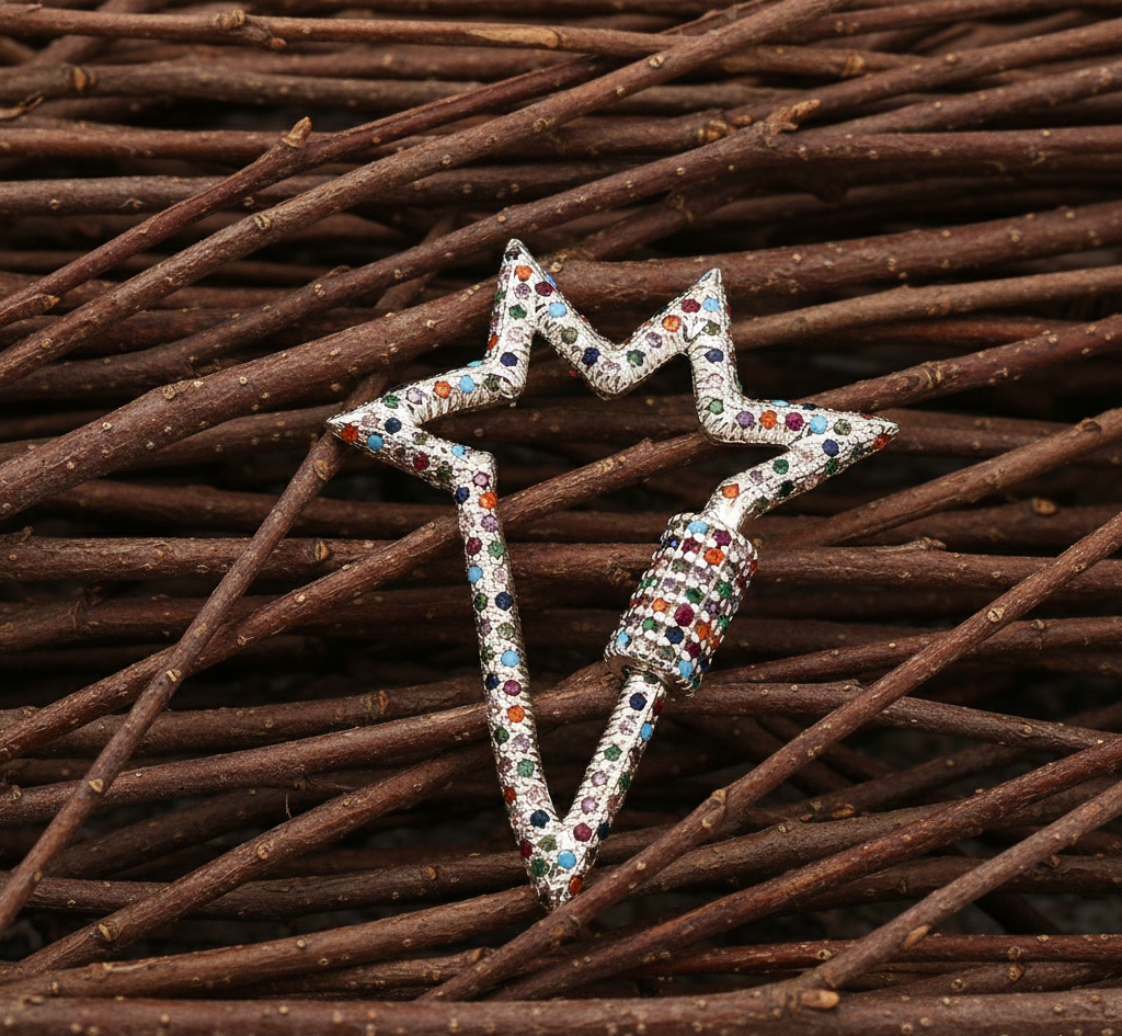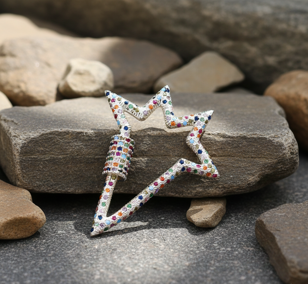 925 Sterling Silver Multi-Color CZ Carabiner Big Star Lock Charms